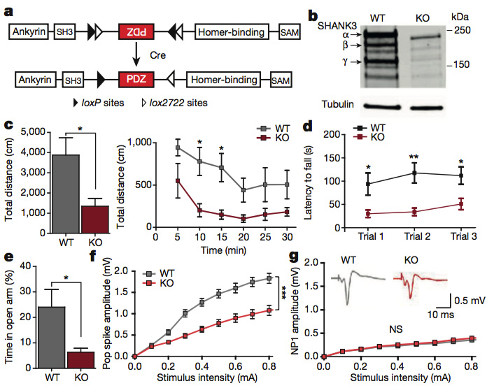 自闭症谱系障碍属于神经发育障碍疾病,患 者在3岁前出现症状。自闭症研究中的一个关键问题是成人病理可逆性。13年《Nature》上的一篇文章即显示,过度表达Shank3的小鼠会表现出类似 狂躁的行为以及癫痫发作和神经活动的激发/抑制平衡发生改变等。近期《Nature》再次揭示Shank3在神经疾病发展及治疗中的重要意义。