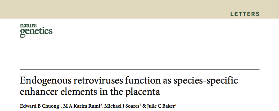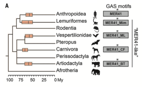 不同于获得性免疫,先天免疫系统是立即起作用的。其中,免疫因子调节在期间发挥了重要的作用。干扰素刺激型基因ISGs,调控着一类非常重要炎性因子即干扰素。ISGs受cis调控单元条用。近期的一项研究指出,ERVs在IFN介导的先天免疫中,发挥了重要的作用。