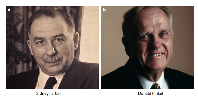 早期急性白血病,死亡率是100%,原 因是没有正确的治疗手段。而化疗领域的开荒者,Sidney Farber以及Donald Pinkel所开发的药物组合疗程,包括使用抗叶酸类药物、皮质甾类药物包括一些细胞毒性药物的组合,改变了这一现状。目前,如ALL-ETV6- RUNX1类急性淋巴白血病,化疗占了90%左右。