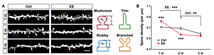 研究人员发现,神经元树突棘修剪,非常普遍,发生在脑部各个区域。树突棘的成熟和其修剪相关,和树突棘密度成负相关。