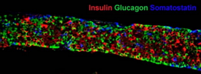 研究人员首先利用实验鼠建立了2型糖尿病疾病模型,即通过给老鼠食喂高脂肪的食物使其呈现肥胖、胰岛素低敏感性以及高血糖等症状。紧接着,研究人员将来源于人体胚胎干细胞,同时被包入胶囊的胰腺祖细胞移植到实验鼠中。胰腺祖细胞分化成为β细胞——一类在胰腺中产生胰岛素的细胞——使得实验鼠的血糖新陈代谢及对于胰岛素的敏感度同时提高。