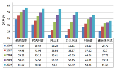 我国生物制药产业发展正处于快速上升期,而单克隆抗体药物无疑是其中表现最为活跃的组成。2011年,全球单抗药物的市场总量已经达到628亿美元,国内市场规模超过10亿元,并且每年以50%以上的速度递增,高于国际单抗市场的增长速度。