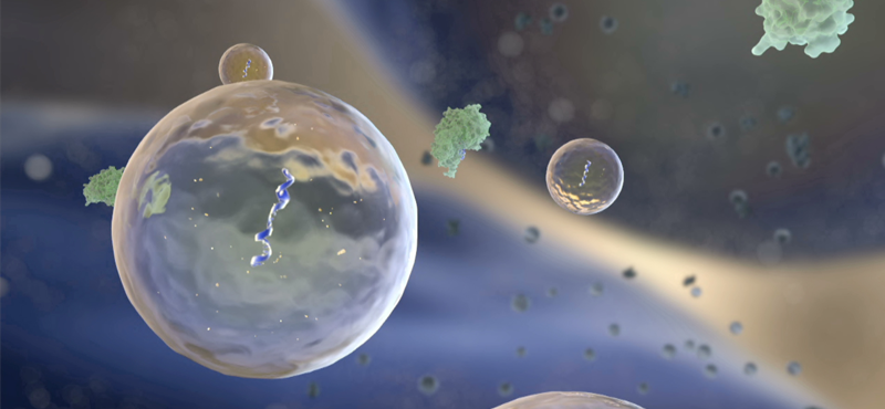 外泌体是一种直径为30-100nm纳米的脂质包裹体结构,内部包含了蛋白、mRNA和microRNA等物质。包括肿瘤细胞在内的几乎所有类型的细胞,都可以产生并释放外泌体。外泌体经细胞分泌释放后,在血液等体液内传播,最后又可被其他细胞吞噬,是细胞间通讯的重要介质。
