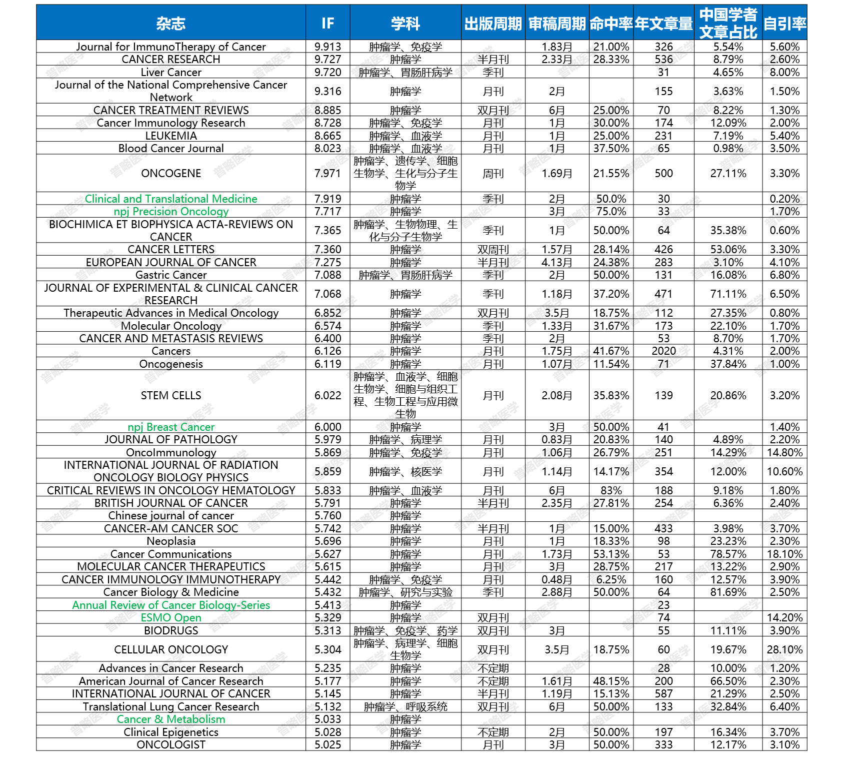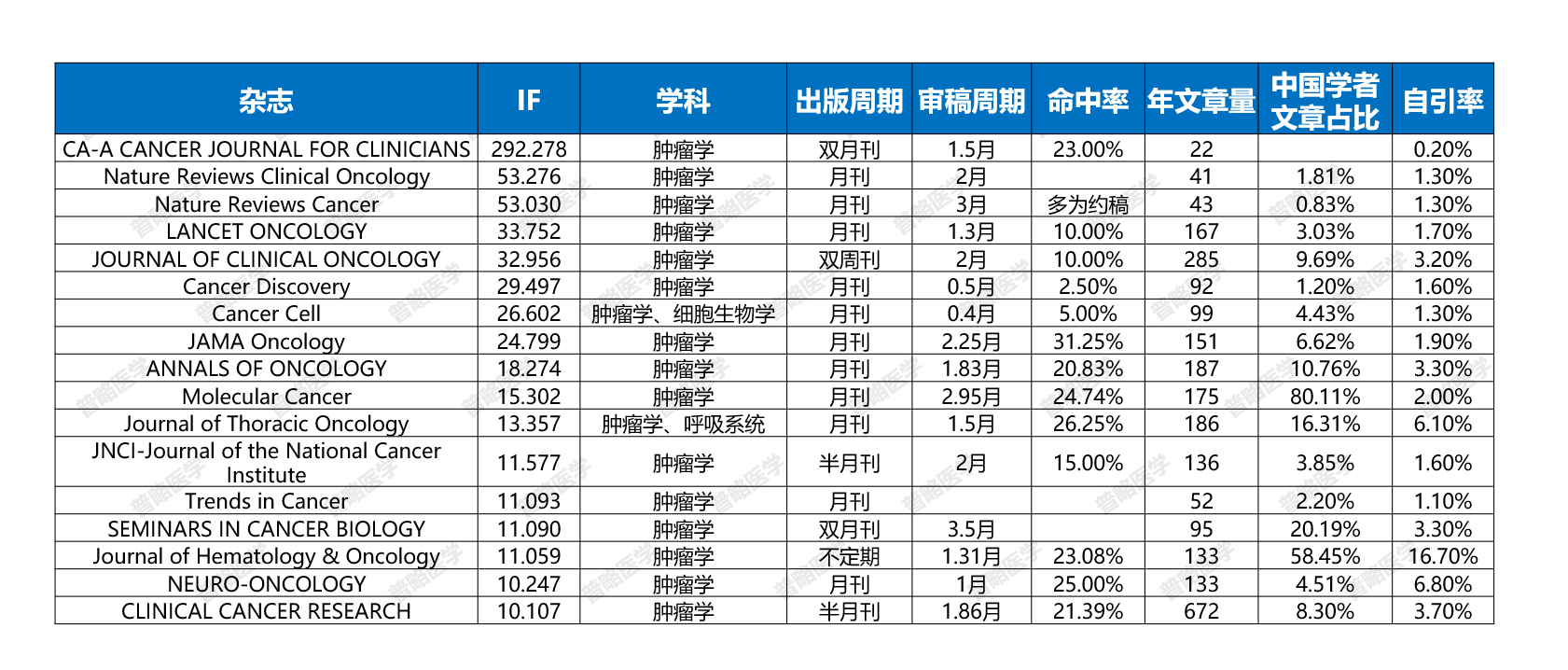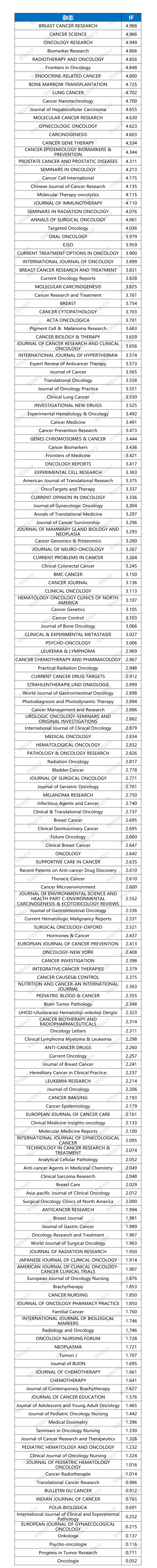 244本肿瘤学SCI期刊汇总分析,附2020年最新影响因子