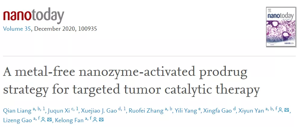 NanoToday:纳米酶前药催化治疗肿瘤新策略!