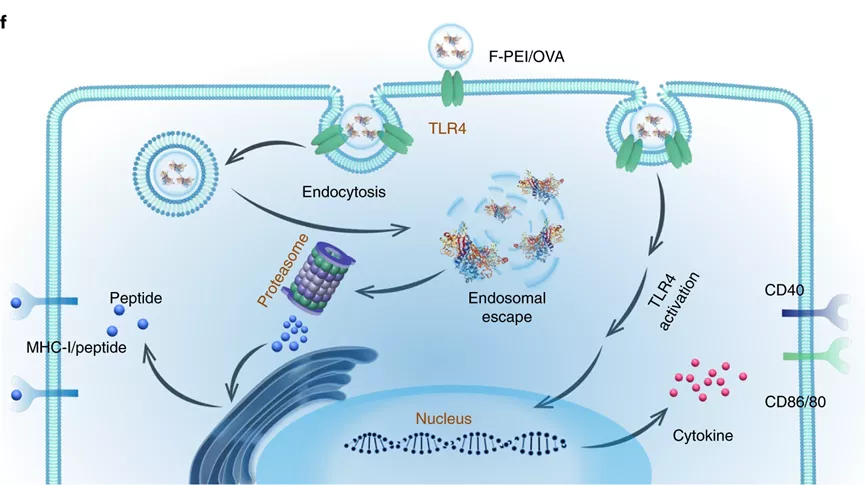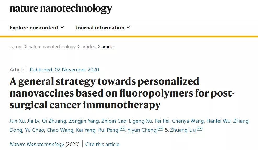 近日,苏州大学刘庄教授、彭睿教授和华东师范大学程义云教授等人在《Nature Nanotechnology》上发表了题为:A general strategy towards personalized nanovaccines based on fluoropolymers for post-surgical cancer immunotherapy的文章,利用氟化树枝状大分子和聚乙烯亚胺(PEI)作为递送抗原的载体,来制备具有有效抗原交叉呈递的肿瘤纳米疫苗,并期望实现有效的针对患者的手术后免疫疗法。