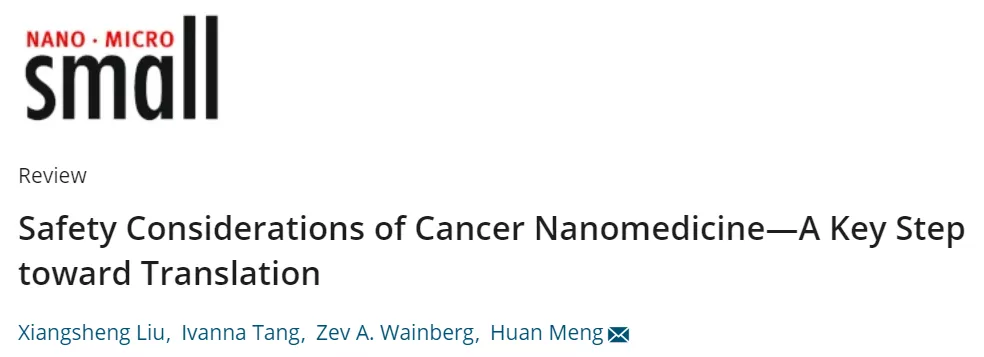加州大学洛杉矶分校孟幻教授团队和肿瘤中心Zev Wainberg医生团队等联合在《Small》上发表了题为:Safety Considerations of Cancer Nanomedicine—A Key Step toward Translation的综述,文章以传统纳米安全性研究为基础,借鉴脂质体临床转化研究经验,结合自身研究成果,对肿瘤纳米药物的安全性评价进行了总结和前瞻性分析。