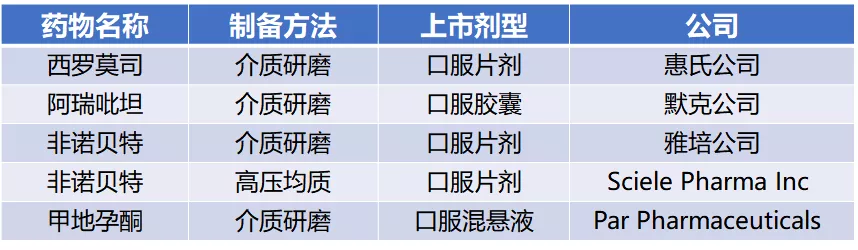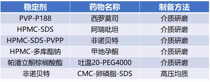 表1 部分已上市纳米药物晶体
