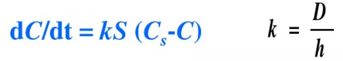 Noyes-Whitney方程:Cs为固体药物表面的饱和浓度,C为溶液中药物的浓度,S为固体表面积k为溶出速度常数,D为荮物的扩散系数,h为扩散边界厚度