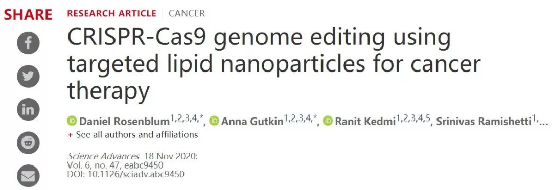 CRISPR技术联合脂质纳米颗粒实现抗癌突破,显著抑制肿瘤生长!