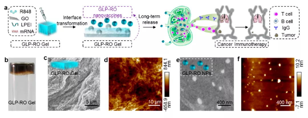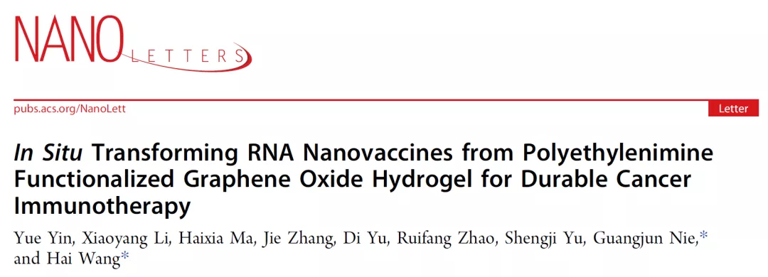 中国国家纳米科学技术中心(NCNST)的科学家在《Nano Letters》上发表了题为“In Situ Transforming RNA Nanovaccines from Polyethylenimine Functionalized Graphene Oxide Hydrogel for Durable Cancer Immunotherapy”论文,报道了其设计的一种水凝胶,可提供带有免疫刺激佐剂的mRNA疫苗。