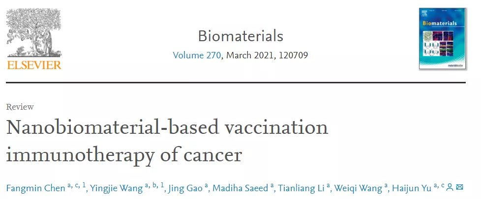 Biomaterials | 基于纳米生物材料的癌症疫苗免疫治疗