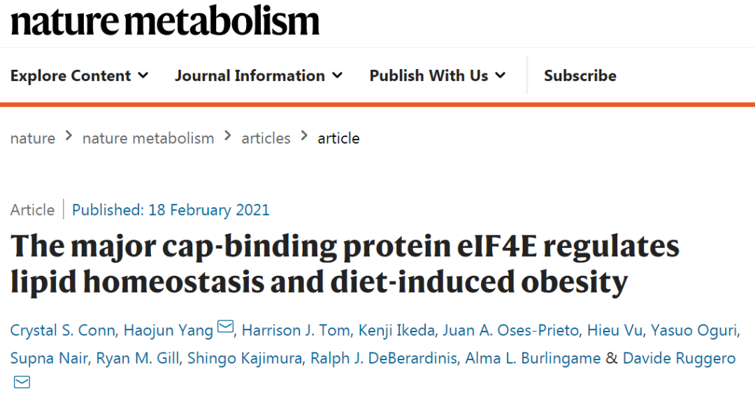 [1]Crystal S. Conn, et al., The major cap-binding protein eIF4E regulates lipid homeostasis and diet-induced obesity. 2021. Doi:10.1038/s42255-021-00349-z.