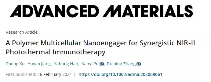 [1] Cheng Xu, et al.,A Polymer Multicellular Nanoengager for Synergistic NIR-II Photothermal Immunotherapy. Advanced Materials. 2021. Doi:10.1002/adma.202008061