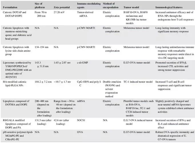 天然衍生的纳米颗粒包含生物成分或细胞衍生的囊泡,例如脂基纳米颗粒。脂基纳米颗粒(LNPs)已经广泛使用于FDA批准的临床研究中,在癌症免疫治疗方面,LNPs主要作为免疫佐剂、核酸、抗原肽、蛋白和其他免疫刺激分子的载体。LNPs系统的组成可控,具有仿生结构,承载能力高,毒性低,因此常作为承载免疫调节剂的载体。