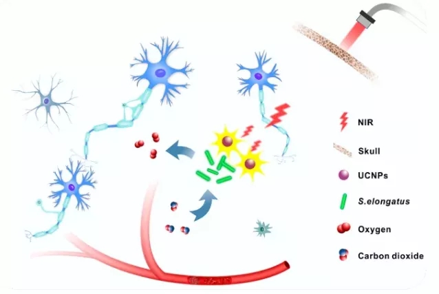 近日,华中科技大学的研究团队在 《Nano Letters》在线发表了“Oxygen-Generating Cyanobacteria Powered by Upconversion Nanoparticles-Converted Near-Infrared Light for Ischemic Stroke Treatment”文章,该团队研发的纳米光合作用生物系统能够通过持续产生氧气并吸收二氧化碳,保护神经元细胞免受缺氧导致的细胞死亡,从而治疗中风。