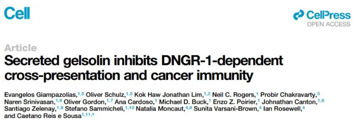 [1] Evangelos Giampazolias et al., Secreted gelsolin inhibits DNGR-1-dependent cross-presentation and cancer immunity. Cell, 2021 Doi: DOI:10.1016/j.cell.2021.05.021