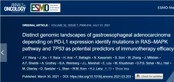 Ann. Oncol. | 最新研究发现TP53可作为胃食管腺癌免疫治疗效果的潜在预测因子